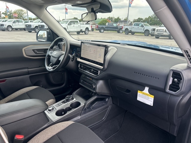 I got a 2025 Big Bend with the black diamond off road package. The steel modular front and rear in combination with bush guard gives this year model. A very aggressive off road look. With the ability to easily mount accessories and power them with the factory installed auxiliary switches. Hitch receiver seamlessly mounted into the rear steel bumper flanked by some very chunky recovery points. The upgraded aluminum rims wrapped with Continental all-terrains. It make this the most capable bronco sport yet. The interior of the 2025 has been updated with a new 13 inch touchscreen with Android Auto and apple car play. The lines of the dash flow elegantly from the new infotainment screen to the new all digital 12 inch gauge chaster. Toggling through the different modes on the gauge chaster is very intuitive, and all the displays are laid out very cleanly. Moving from gauge chaster the center storage cubby just below the infotainment screen there is a wireless charger and USB/ USB-c ports. The passenger side of that same cubby gets a handle and a matching one on the roof just in case the driver bucks a little too much. The passenger also gets a mesh storage area. That leads us to the fact this vehicle has tons of storage options all throughout. You have pockets on the sides of the front two seat big enough for the latest new phones. Very generous door storage on all four doors plus huge glove box and center console with 12 volt outlet. The back side of the center console has air vents and another 12 volt outlet plus a 110 outlet. Now getting to the cargo area it is massive for a crossover SUV. With off road package you get a cargo management system and a very nice rubber mat. Under that there is a full size tire plus scissor jack and funnel to use with the capless filler system. On the liftgate there isa pair of very bright led lights turned on with a switch in the cargo area. This feature packed vehicle has tons awesome gadgets and hidden a little homages I spend all day just talk that. At the end of the day it is car. So how does it drive. It is wonderful, the steering and pedal response is beautiful. Rides very smooth and little to no road noise going down the highway. The active cruise control and co-pilot 360 have been very handy. The car literally drives itself most of the time. There is not enough good things I could same about this car. I love it and you pick one too. You will see what I mean. - 5.0